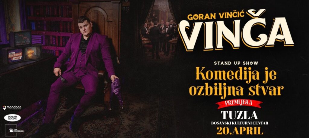 Goran Vinčić Vinča otvara novo poglavlje u svojoj karijeri showom „Komedija je ozbiljna stvar“, trećim samostalnim stand-up projektom koji nastavlja uspješan niz nakon „Dežurnog krivca“ i „Reci mi da se šališ“. U novom showu Vinča se vraća oštriji, iskreniji i zabavniji nego ikad.