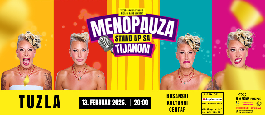 Bosanski kulturni centar Tuzlanskog kantona najavljuje jedan od najzabavnijih stand-up nastupa u regiji, jer u Tuzlu po prvi put stiže hit predstava “Menopauza” u izvođenju Tijane Dapčević.
