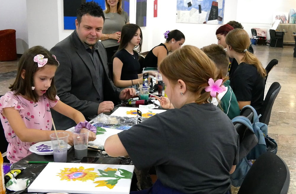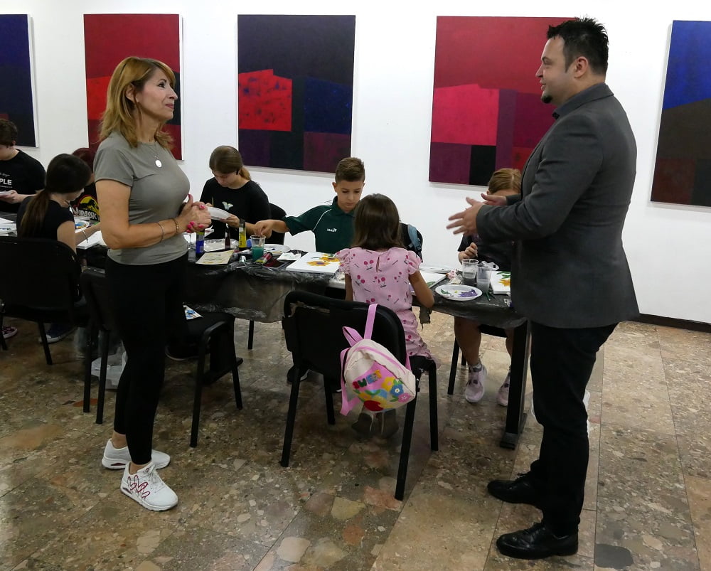 Dio kolonije je i današnja radionica za učenike, mlade talente, koji su kroz mentorstvo Borke Jelić proširili svoja znanja i iskustva o likovnoj umjetnosti, a toj aktivnosti na kratko se kroz rad sa djecom pridružio i ministar Gazdić.