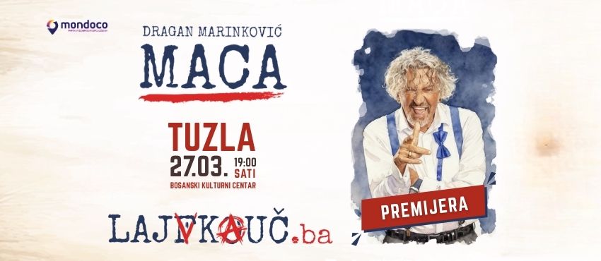 Nova predstava Dragana Marinkovića Mace- Lajfkouč.ba kreće na prvu BH turneju, a izvođenje pred tuzlanskom publikom je zakazano za 27. mart u BKC Tuzla.